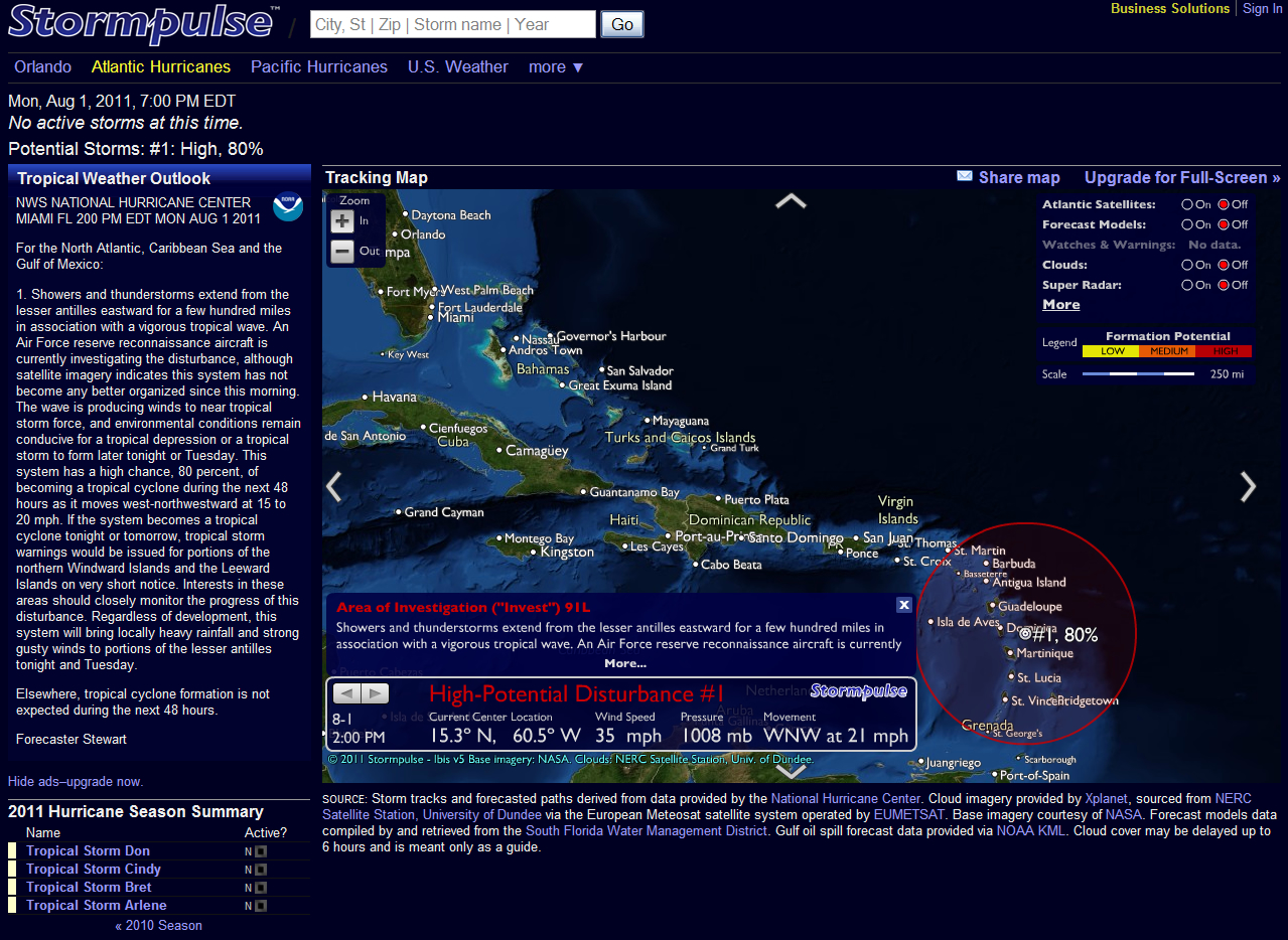 1624 miles from Daytona it is. It’s still only a disturbance but at least it is traveling WNW at 21 mph and has winds of 35 mph.