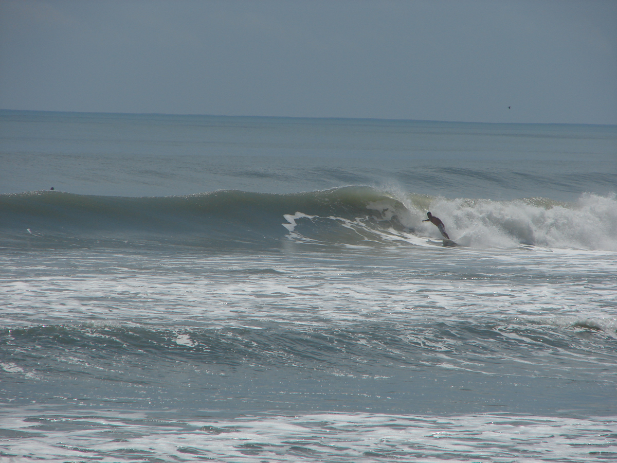 If you tried to make a full bottom turn, short board or longboard, you got pounded. I learned fast. Take the drop and slam hard halfway down, and back up under the lip and there were plenty 150 to 200 yard rides to be had.YES, THAT’S WHAT I SAID. THE SET WAVES AROUND 11 AM, IF YOU LET THE CLOSEOUTS PASS BY, AND THERE WERE PERFECT WAVES ALL THE WAY TO THE BEACH. THE PADDLE OUT WAS PROBABLY 250 TO 300 YARDS, THUS THE 200 YARD RIDES. Lefts and Rights, incredible, perfect glass, light winds, and no crowds!