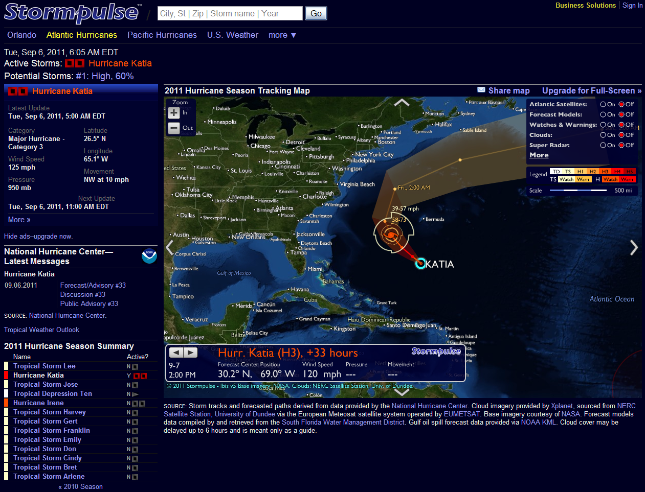 Tuesday as of 5 AM Katia, and its position Wednesday at 2 PM, Cat 3, then maybe Cat 4 today and back to 3 or 2.
