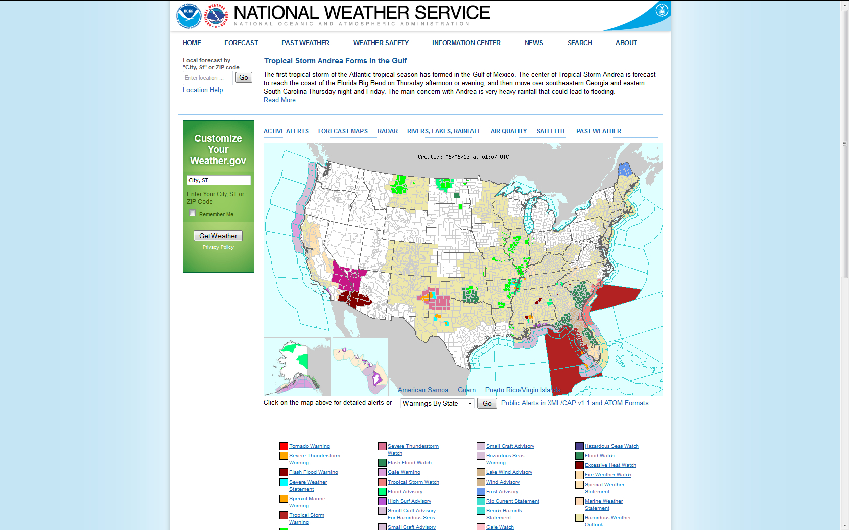 This is direct from the National Weather Service website “The first tropical storm of the Atlantic tropical season has formed in the Gulf of Mexico. The center of Tropical Storm Andrea is forecast to reach the coast of the Florida Big Bend on Thursday afternoon or evening, and then move over southeastern Georgia and eastern South Carolina Thursday night and Friday. The main concern with Andrea is very heavy rainfall that could lead to flooding.”