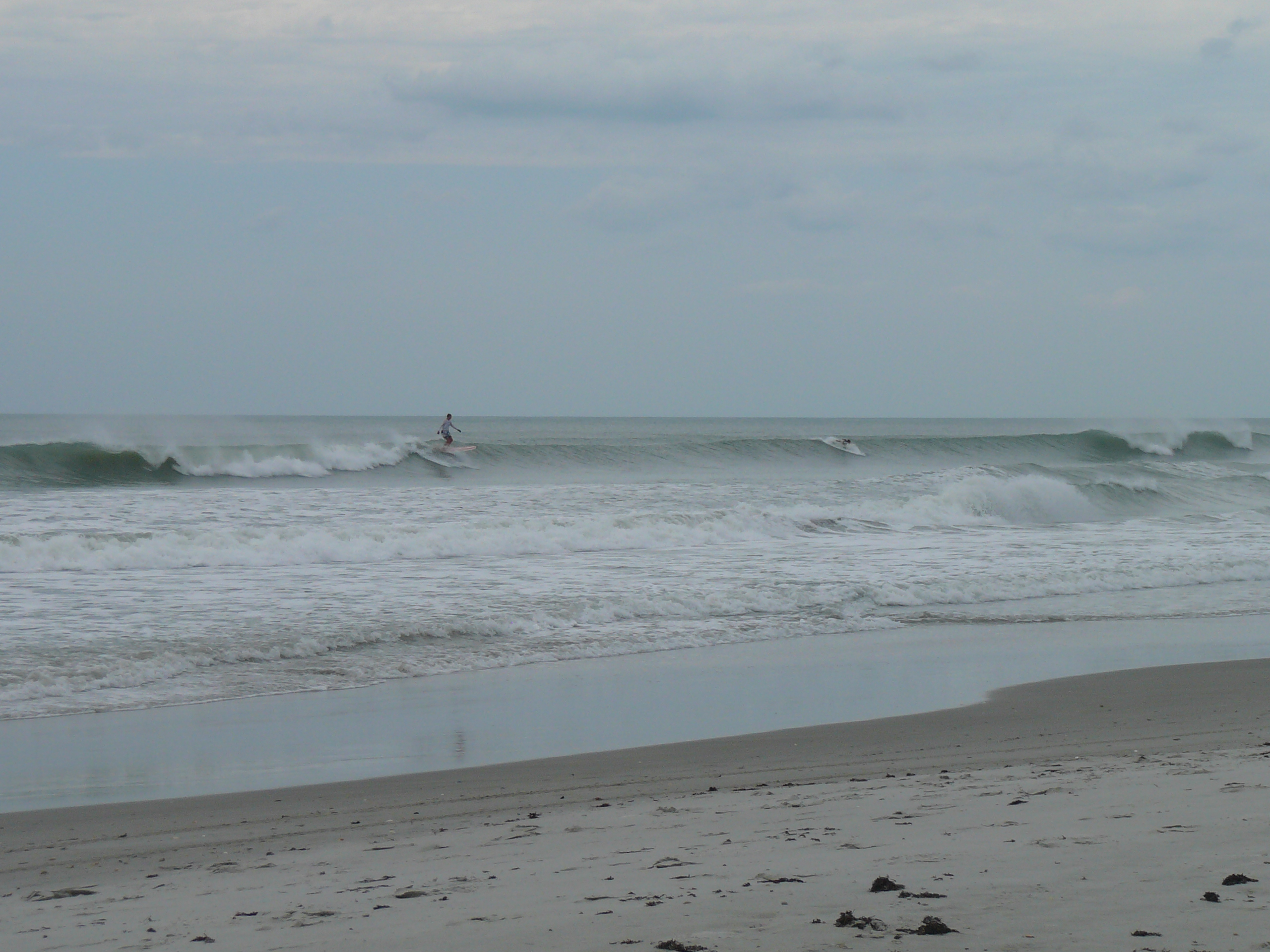 It should be offshore , turning NW in the 4-8 mph range Sunday morning. High tide around 4:08 am, so by 7:30 it should start having some juice to it, provided no morning sickness is upon us. I think it will be waist to rib high and fairly glassy down south. The size up North should be more like the waist high range.