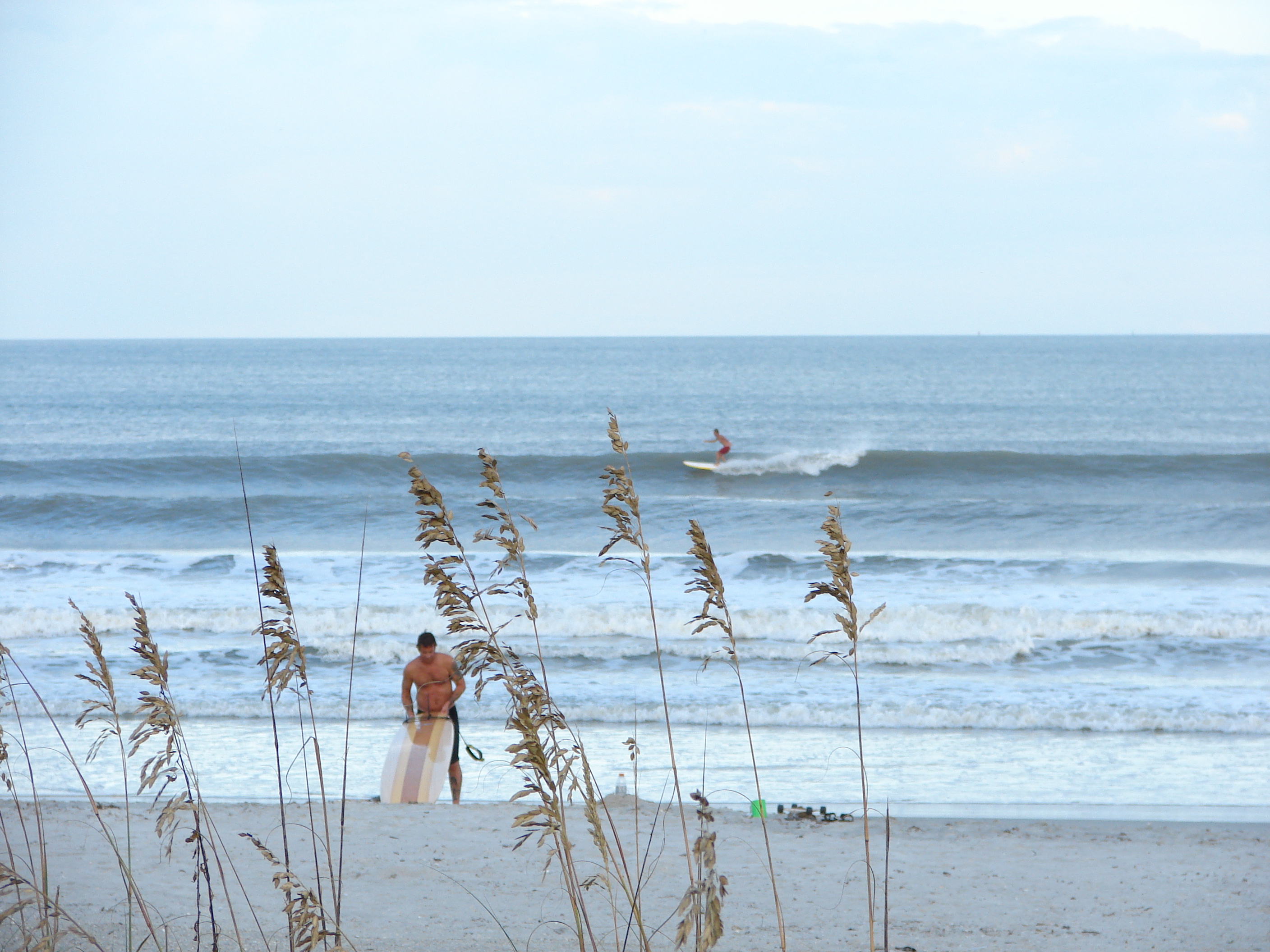 Monday morning, if you surf North, Lori Wilson or the Pier, should have some chest high plus sets with semi-glass until 9 or 10 AM. The winds should be 5 to 10 mph out of the North, so it could be fairly big and semi-glassy.