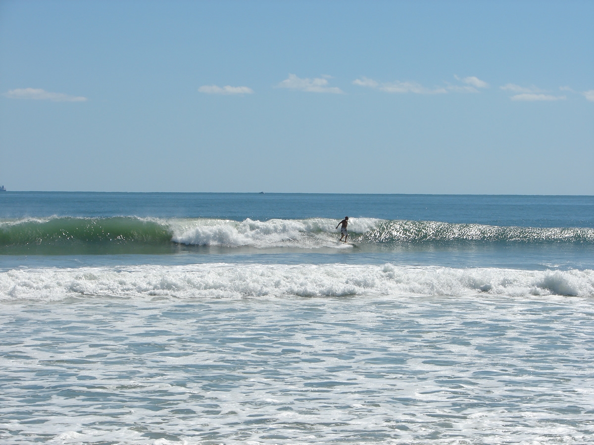 Today was Chest high peaks peeling left and right, with A-frames at Hightowers 🙂 Well, it would have been nice if we had direct offshore winds, but…close enough, a little SSE to S, maybe SSW light. Only 8 or 10 of us out, and again, I didn’t even need a wetsuit, the water was hanging around 69 ° again.