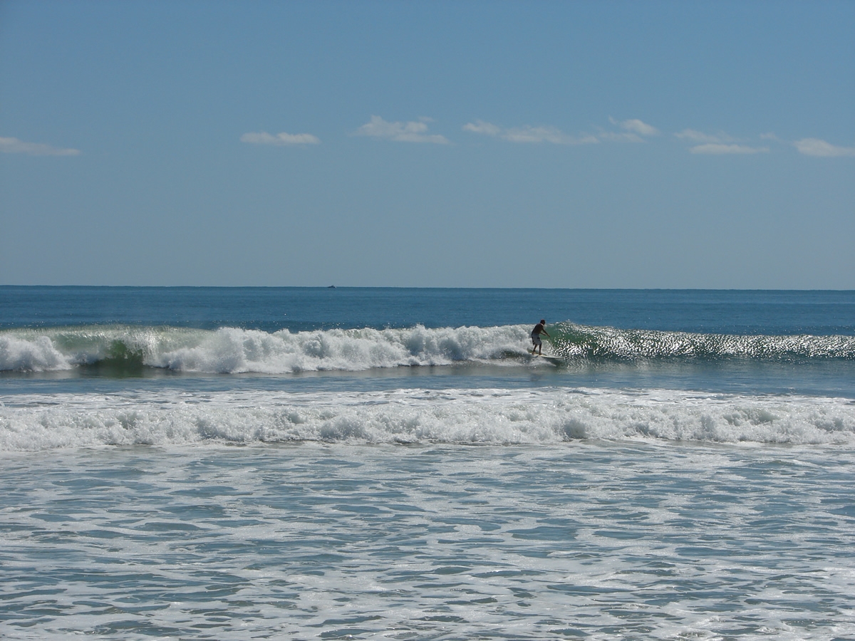 Then Chad and I headed down South for an 11 AM sesh, and for the first half hour it was like 1 in 15 waves were makeable at best, but nice head high faces on the drop with a quick closeout, and then it changed. It started to hold up a little better, maybe 1 in 8 would hold up, and then we got some of those 70 to 100 yard shoulders pumping most and some times all the way to the beach. Almost all lefts. A few select rights. Brother Chad nailed at least 2 or 3 of em in the 100 yard plus range, with one solid, did I say solid?; 150 yard right from far outside, all the way to 1 foot deep water, and used that as his bus ride in 🙂 He smoked it. I got the perfect left (except for a small epileptic surge on a few re-entries) to take me most of the way in 🙂 A bunch of rail-grabbing left take-offs for chasing speed up high on the wave.
