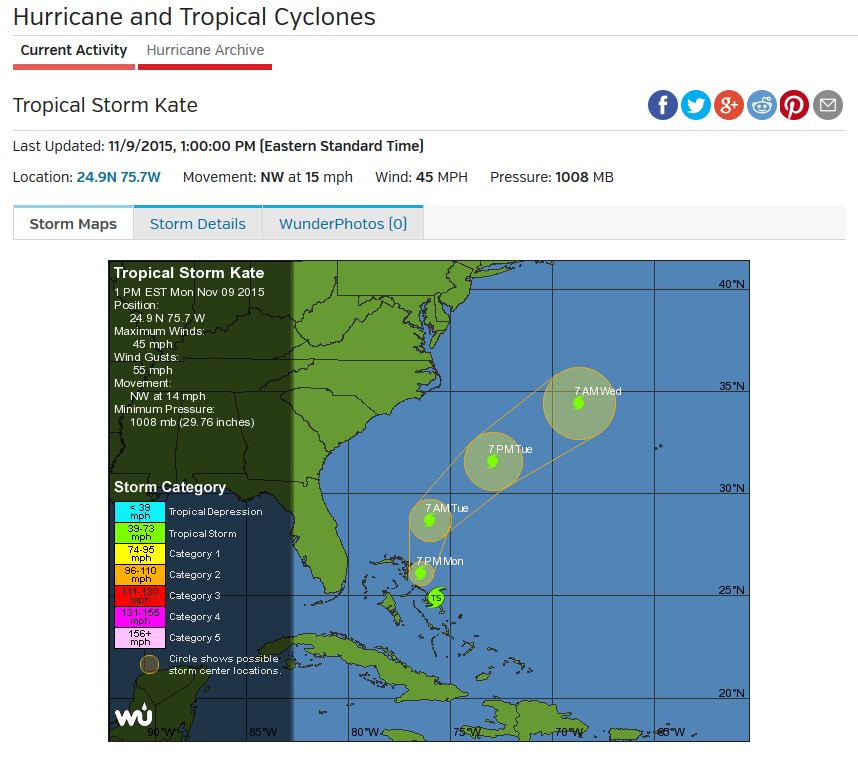 Tropical-Storm-Kate-at-1pm-11-09-15-Wunderground-tracking-for-Tuesday-swell-compliments of Wunderground.com