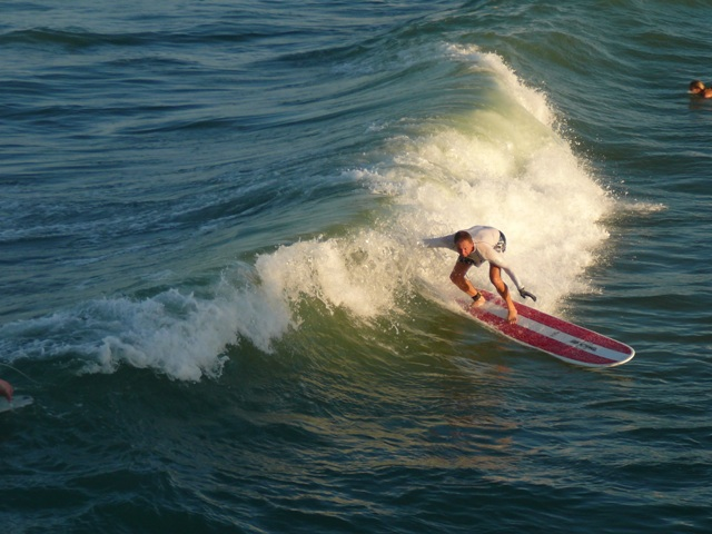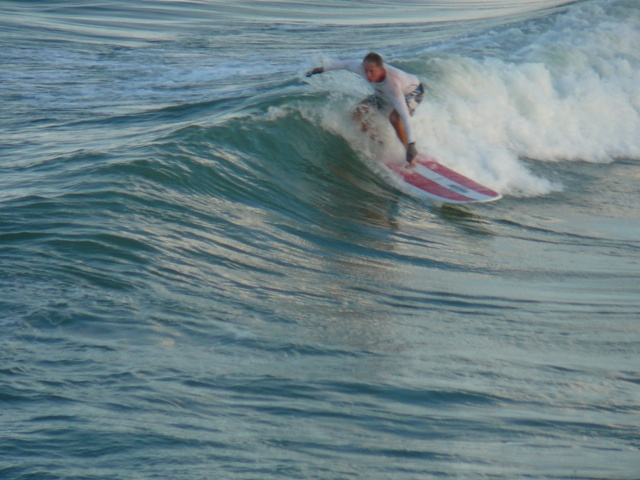 These photos my buddy Mike took of me while he and Steve shouted In-sensitive comments to me down below as I attempted to grab a few waves as a Senior Citizen amongst the younger crowds 🙂
