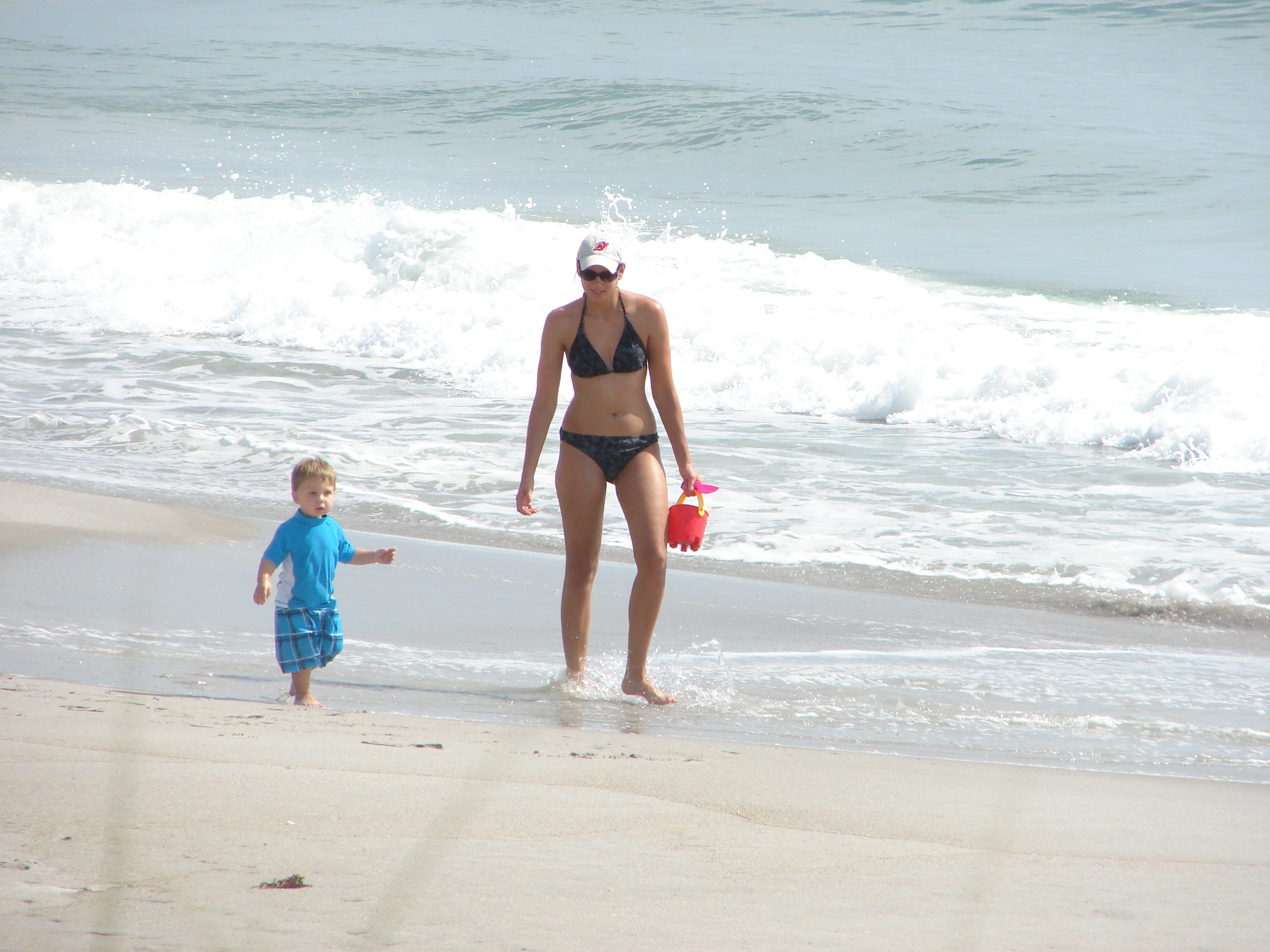 Beautiful summer day at the Cape, fun little waves, a big boat, lots of folks on the beach, a few babes/ladies out, and me having fun watching Sunny.
