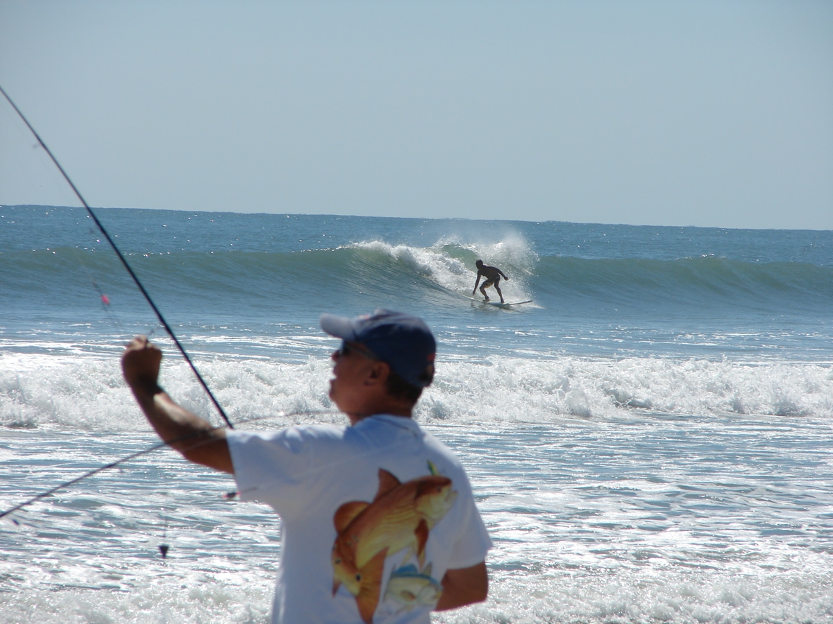day to catch some shots. The guy in this wave perhaps someone can identify him for me, and as you can see he had the cleanest, most user friendly wave that let him even stall a bit while I snapped off a 3 shot sequence. (just kidding, actually the guy fishing was pulling in a 34 inch snook and the surfer was watching him, no, just kidding again)