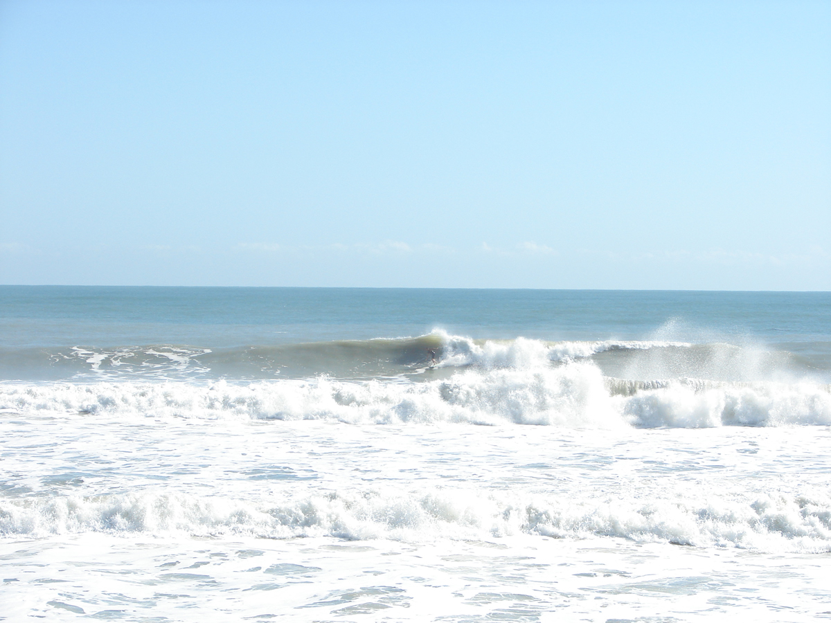 It wasn’t one of the bigger waves of the day, maybe an 9 foot face on the drop. The guy walking in is the one on the wave. There was only 3 or 4 people out in front of me and one guy kind of North toward Perkins. But it was still a day and a wave that was to be respected by anyone. It was painful enough to have to stay out of the water for as long as I have. This was 1 of 6 awesome swells that we have had this kind of size this year 🙂