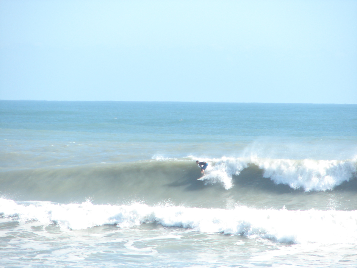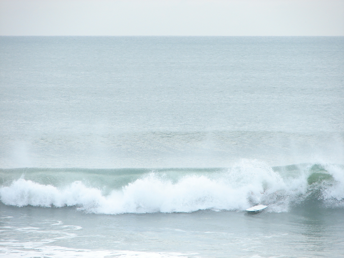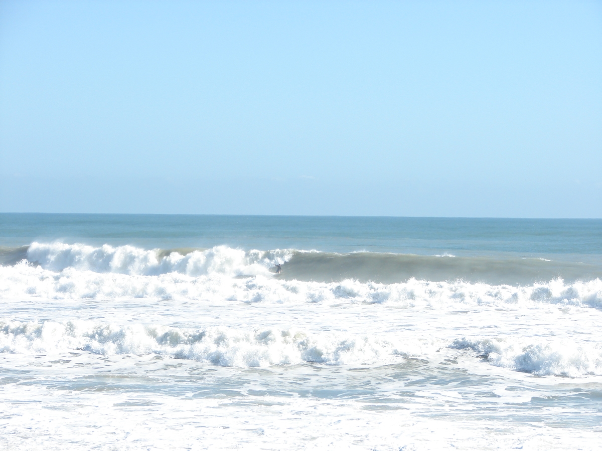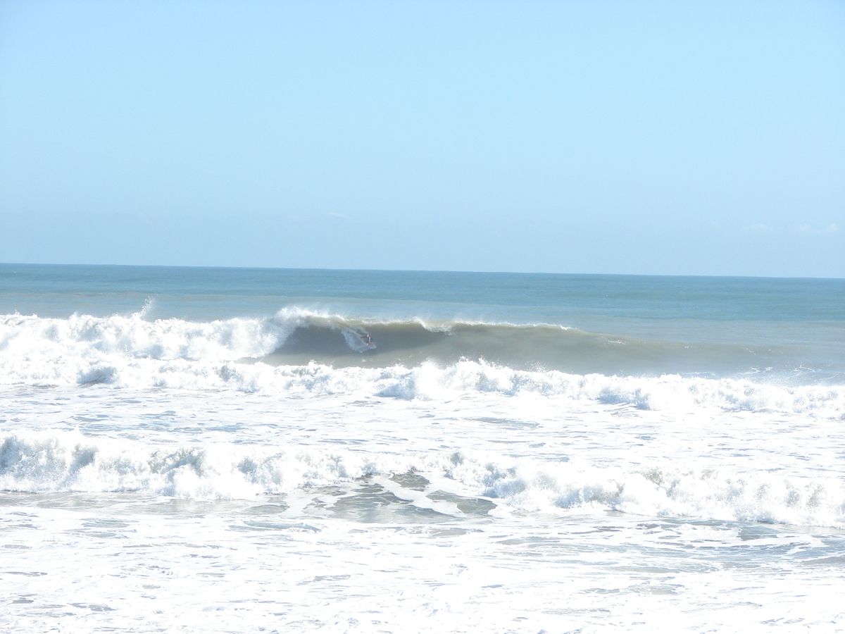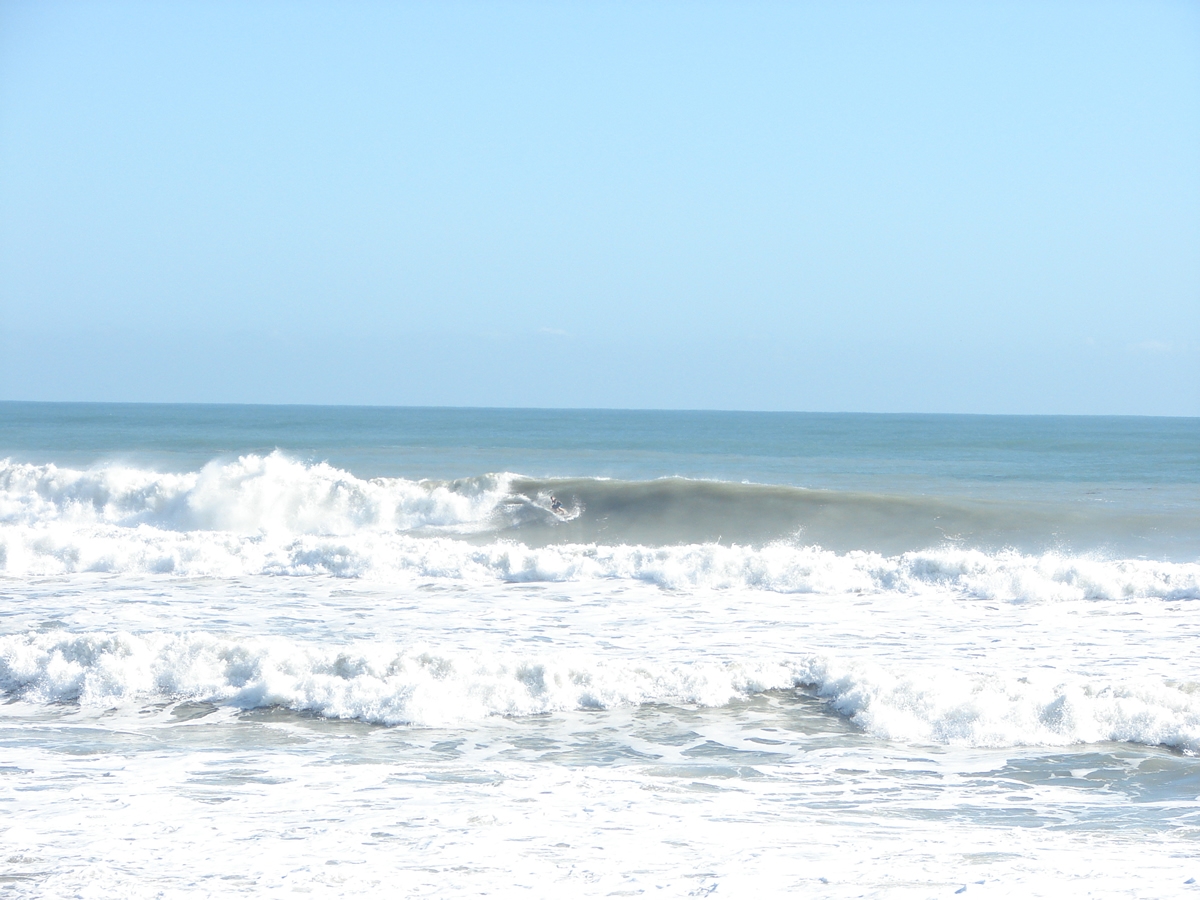 I had to put that first photo of the PADDLE OUT. Hey, when you click on the thumbnail to see the blow up photo, click on it again and scroll your browser window. I posted the pic 2500 pixels wide so you could get the feel of the paddle out. (except for my lousy aperture settngs & lack of filters and aiming the camera right into the sun, rookie, yeah, i know 🙂 Most of us having surfed the Pacific at some time or other know that most of the time, you have a channel to paddle out thru so you don’t have to take relentless pounding on the head. My times were California, along with Baja Mexico, and down by Acapulco an hour or so above Escondido. But this guy paddling out, granted doesn’t have to duck many waves, but it still is humorous to see that 10 foot face including whitewater that he has to gauntlet thru 🙂 The other photos are a 3 shot sequence of a nice few foot overhead barrel that does dump on him, but he did escape.