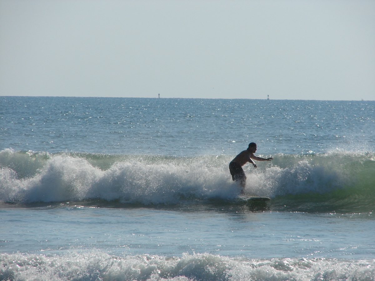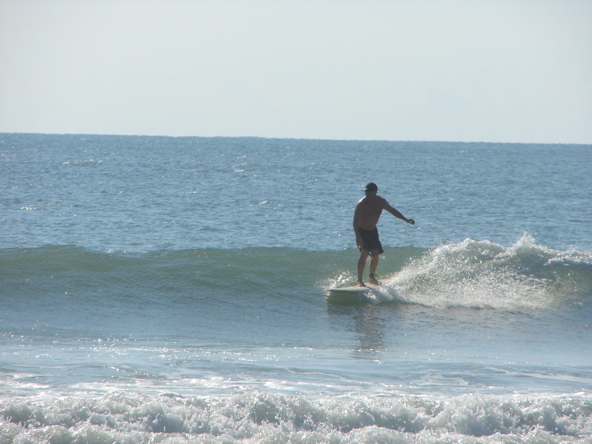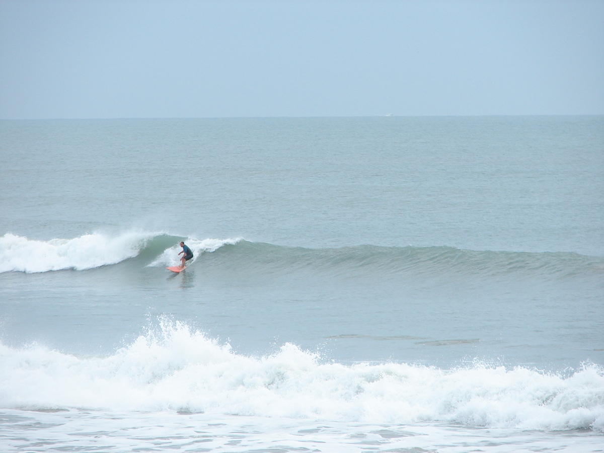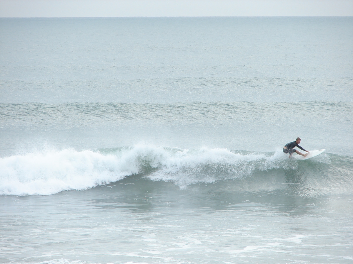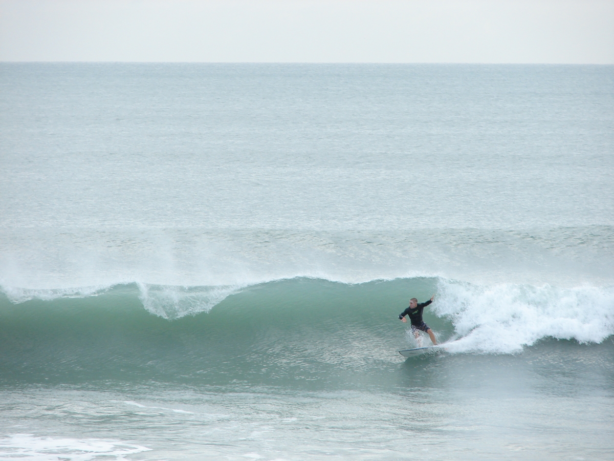 I had to put that first photo of the PADDLE OUT. Hey, when you click on the thumbnail to see the blow up photo, click on it again and scroll your browser window. I posted the pic 2500 pixels wide so you could get the feel of the paddle out. (except for my lousy aperture settngs & lack of filters and aiming the camera right into the sun, rookie, yeah, i know 🙂 Most of us having surfed the Pacific at some time or other know that most of the time, you have a channel to paddle out thru so you don’t have to take relentless pounding on the head. My times were California, along with Baja Mexico, and down by Acapulco an hour or so above Escondido. But this guy paddling out, granted doesn’t have to duck many waves, but it still is humorous to see that 10 foot face including whitewater that he has to gauntlet thru 🙂 The other photos are a 3 shot sequence of a nice few foot overhead barrel that does dump on him, but he did escape.
