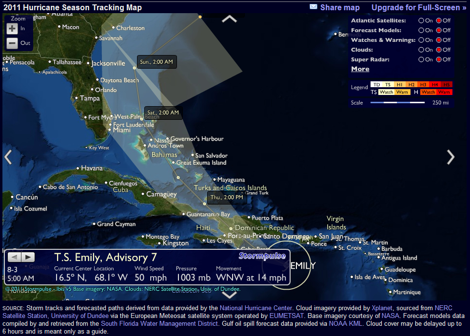 Tropical Storm Emily has stalled as of 8 PM tonight, but it does still have 50 mph winds. It’s border is skimming Haiti and the Dominican Republic. So right now the models dropped from 6 to 7 feet at around 11 seconds to 3.5 at 9 seconds. This I feel will jump back up again, a little, but if not, it’s still showing for Sunday, chest to shoulder-high wave potential by Patrick/Satellite and waist to chest here at the Cape with NW winds brisk but not too strong.